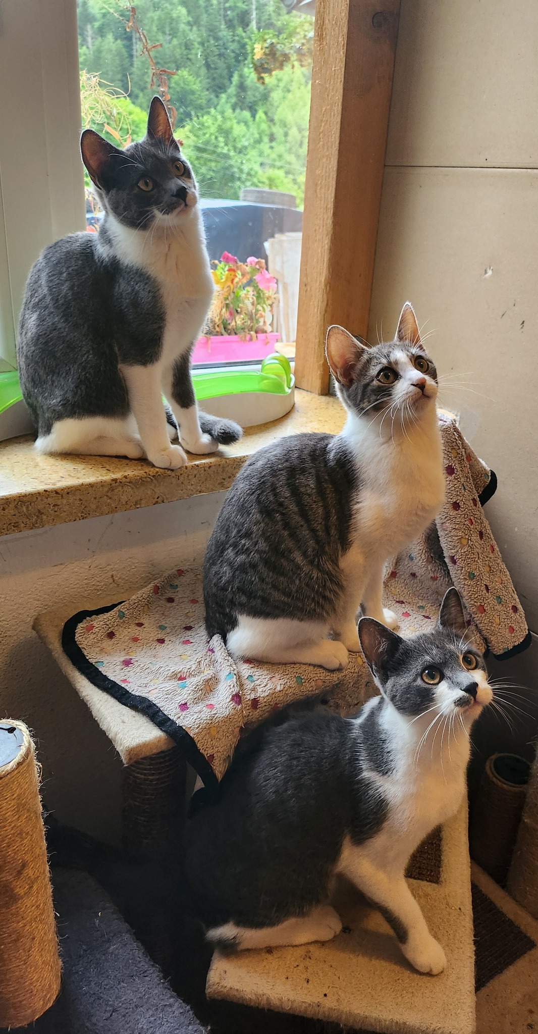 Gruppe 1: 1 schwarzes kastr. Männchen und 1 schwarzes und 2 braune Weibchen